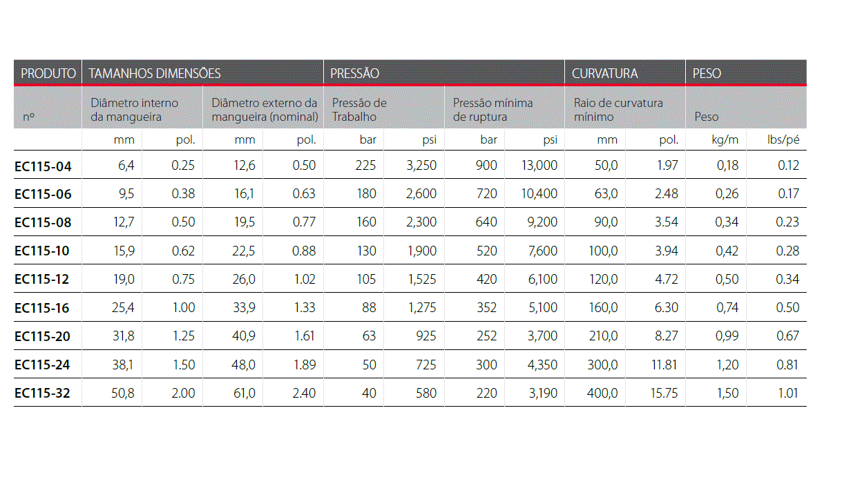 EC115 – Mangueira Hidráulica com 1 Trama de aço