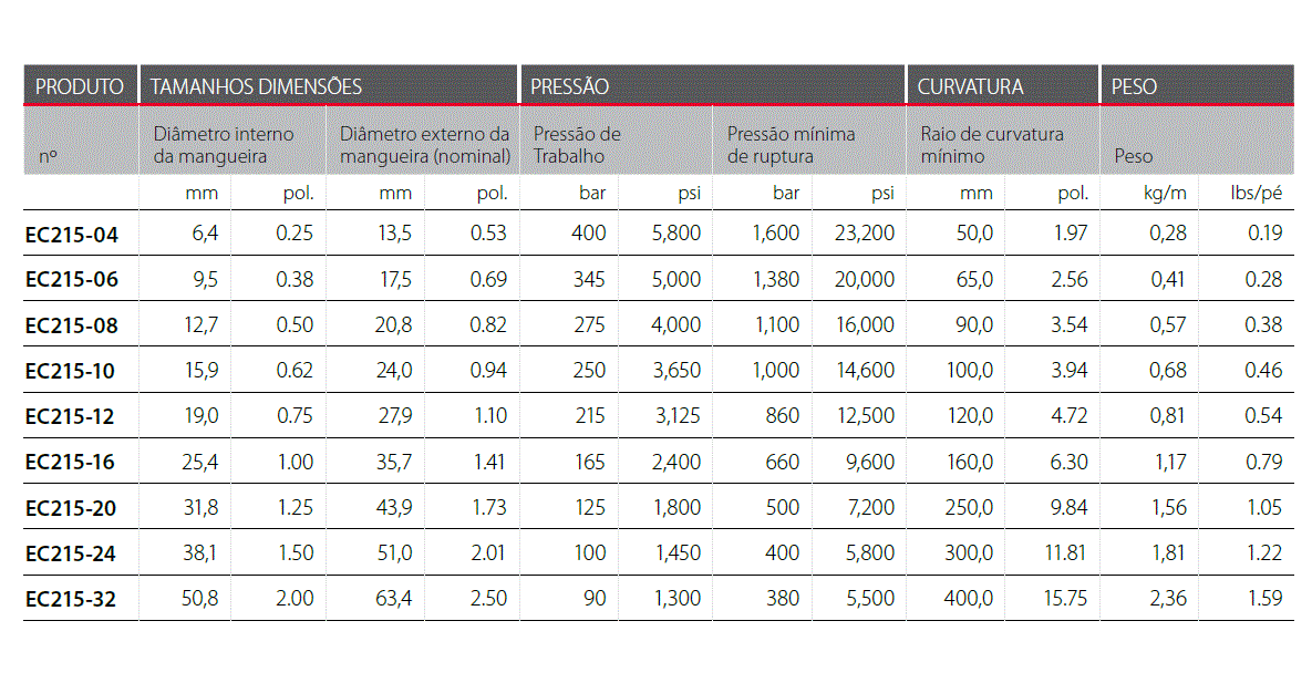EC215 – Mangueira Hidráulica com 2 Tramas de aço