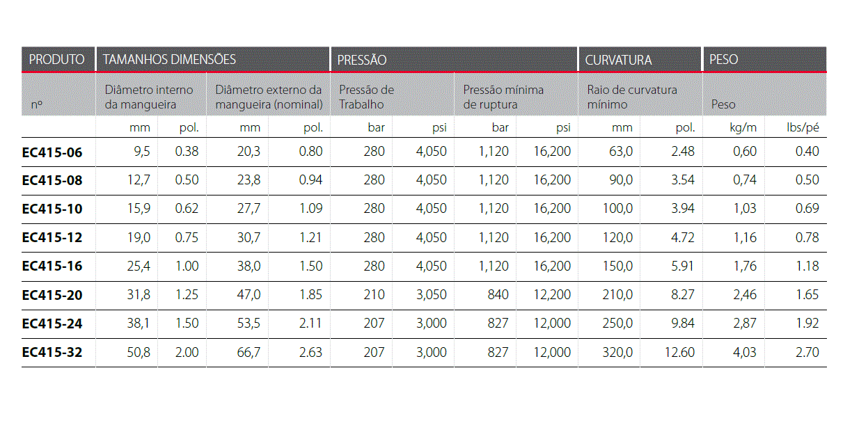 EC415 – Mangueira Hidráulica com 4 Tramas de aço